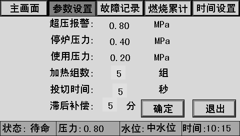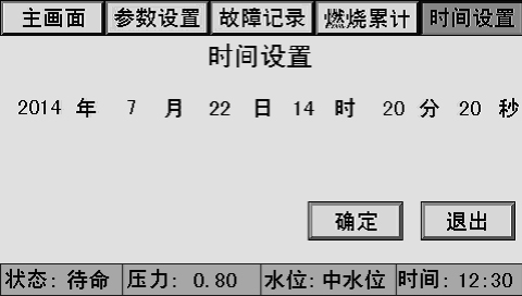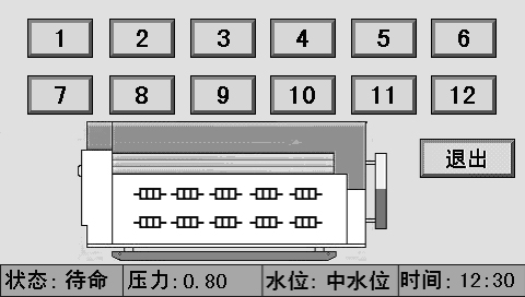 主畫面上同時(shí)顯示控制器狀態(tài)、系統(tǒng)壓力、水位、時(shí)間、燃燒器狀態(tài)、泵狀態(tài)等。
