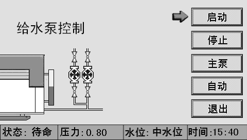 在主畫面上,按給水泵進(jìn)入“給水泵操作”畫面。如圖 4 所示。