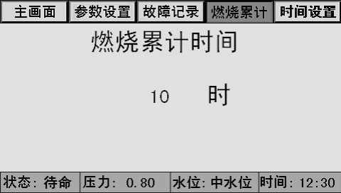 在菜單按“燃燒累計(jì)”按鍵,進(jìn)入燃燒累計(jì)畫面。如圖 9 所示。