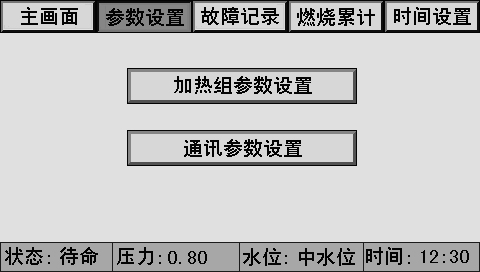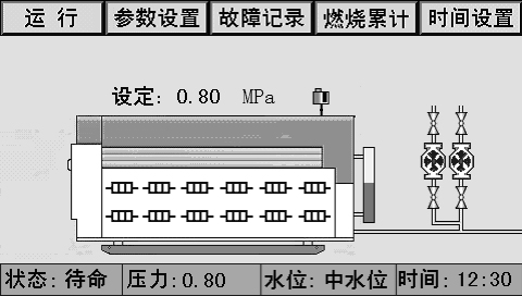主畫面上同時(shí)顯示控制器狀態(tài)、系統(tǒng)壓力、水位、時(shí)間、燃燒器狀態(tài)、泵狀態(tài)等。