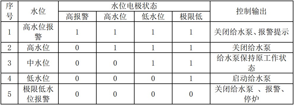 在自動(dòng)狀態(tài)下,控制器通過檢測水電極信號(hào)判斷鍋爐水位的狀態(tài),并根據(jù)此狀態(tài)控制給水泵的啟停。水位低于低水位電極時(shí),控制器啟動(dòng)給水泵;水位高于高水位電極時(shí),控制器關(guān)閉給水泵。